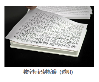 爱赛因数字标记封板膜(透明):粘性好,聚烯烃材质;每个孔有对应数字,分为透明、白色、离型纸印字三种,方便实验记录;适用于PP、PE、PS、PC材质等SBS标准孔板;适合于Elisa、酶标检测、样本短期储存等应用。